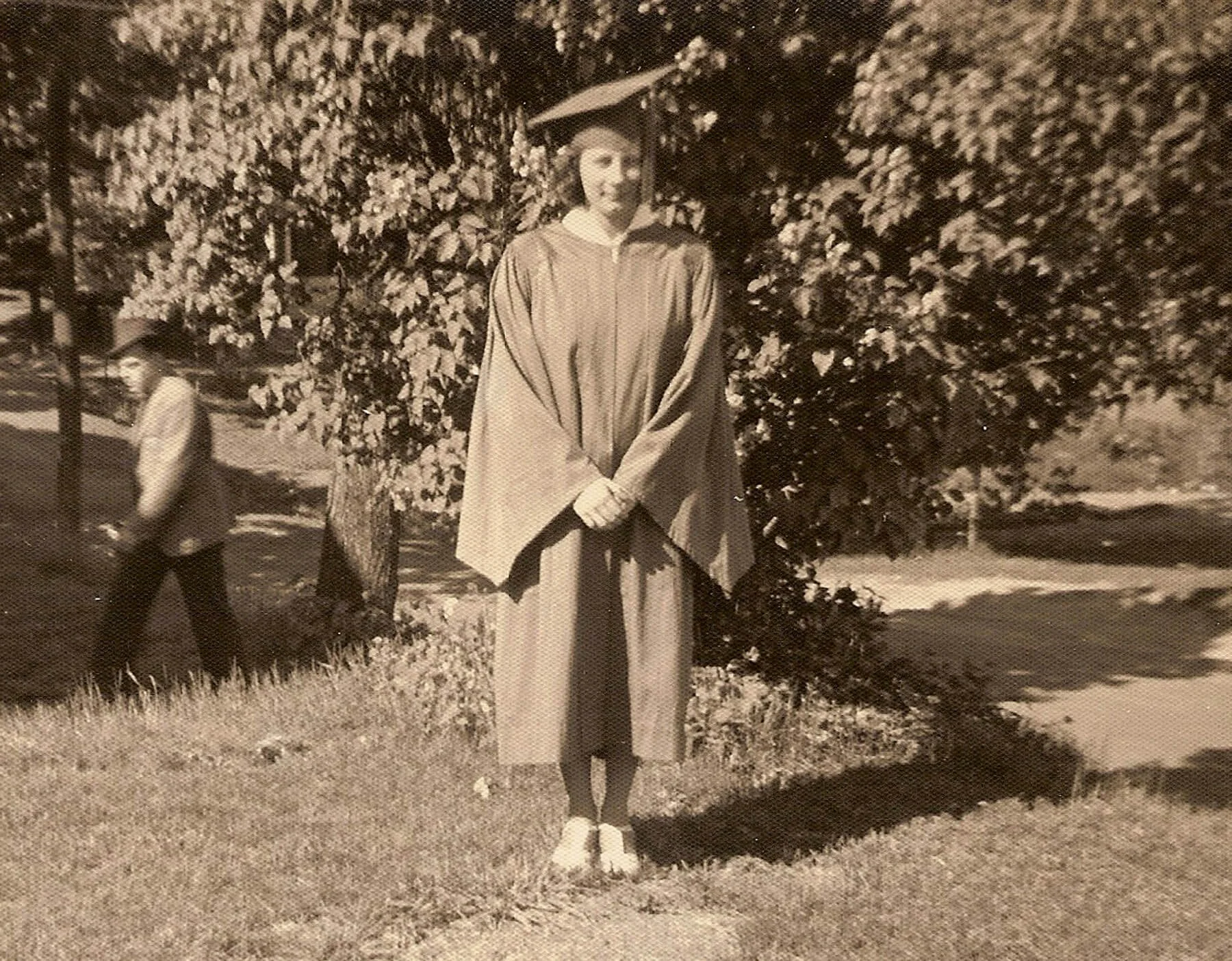I don’t remember the funeral or the bitter squabble over the wedding ring. But I do remember her eyes—my eyes. Her hands—my hands. The phrase that haunted me: I can’t take it. A baby doll cradled in the crooked arms of a woman who was anxious and afraid, but not alone. A high school yearbook tucked into the corner of the room, pages yellowed with secrets of a lover lost to war. A younger man. A baby born eight months after the wedding.
